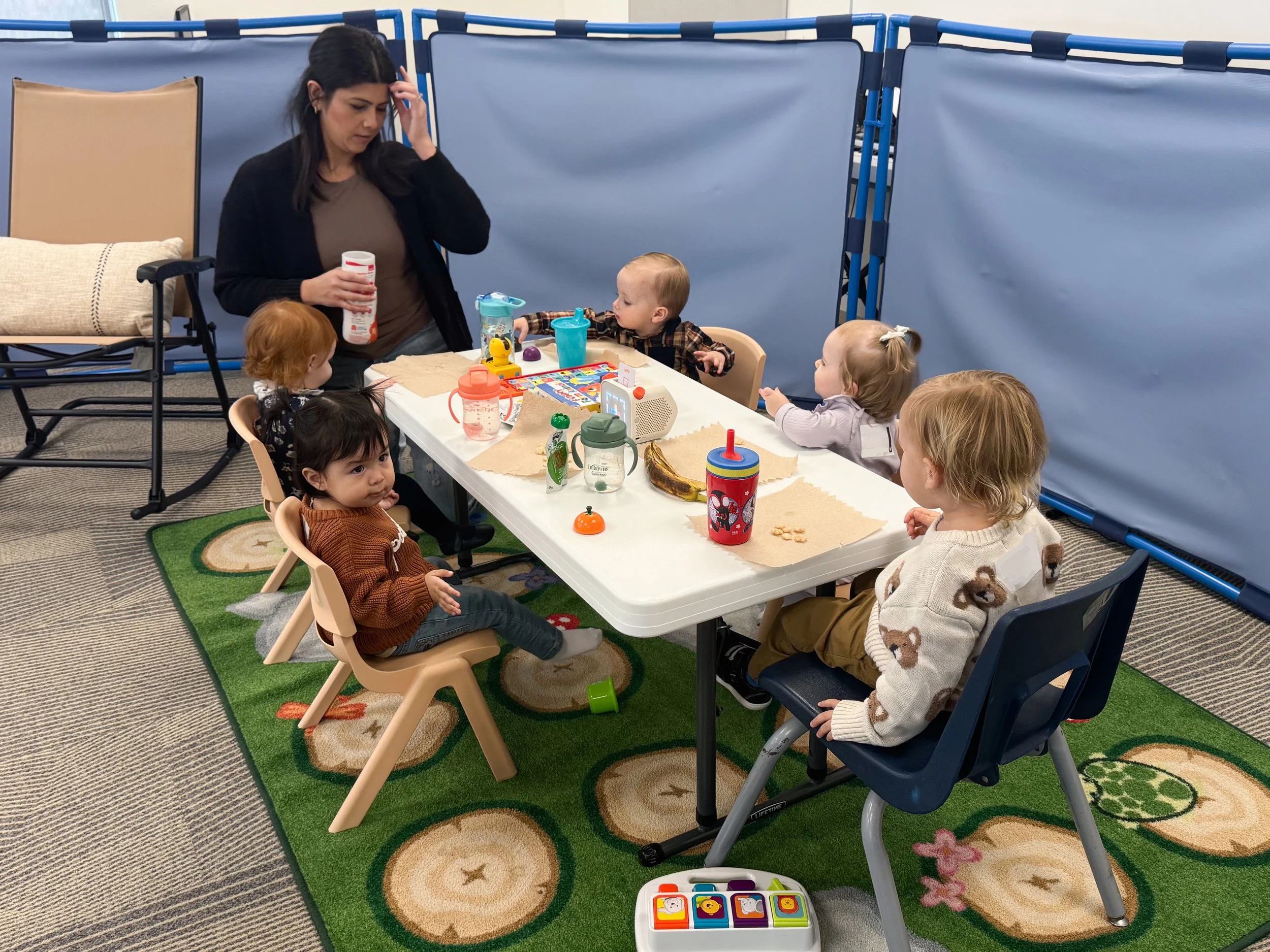 Our nursery & toddler classroom serves crawling babies through 3-year-olds, providing a safe, loving, and nurturing environment where children can experience God’s love.